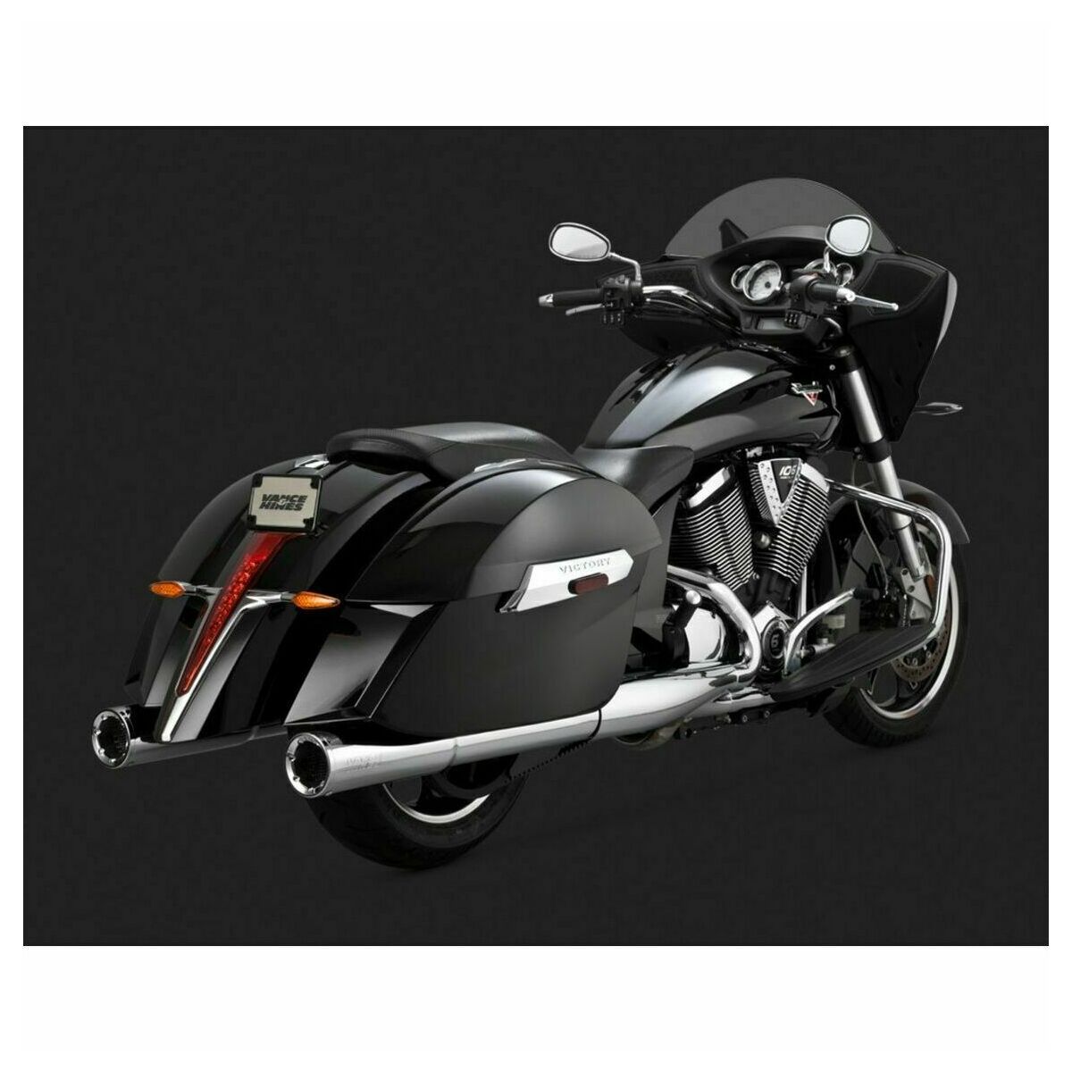 Vance and Hines Hi-Output Slip-ons address the need for a Slip-On system for the VictoryÍs 106-ci V-Twin motor. Every aspect of the Hi-Output Slip-OnÍs design is singularly focused to yield maximum horsepower by improving the volumetric efficiency of heavily modified engines as well as stock.